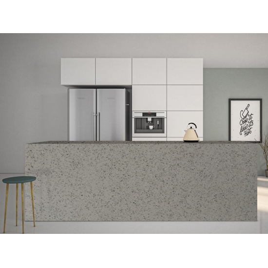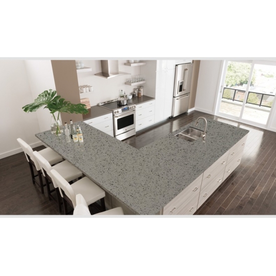 그레이 스파클 시리즈 쿼츠는 특수 처리된 인조 쿼츠 스톤으로, 다른 시리즈와 달리 더욱 반짝이는 외관을 자랑합니다. 벽, 바닥, 조리대 등에 시공하면 깊이감과 질감을 더해줍니다. 욕실이나 주방의 벽면 장식이나 세면대 뒷벽을 꾸미는 데에도 활용할 수 있습니다. 또한 항균 및 방습성이 뛰어나 습기에 강한 특성 덕분에 습기가 많은 환경에서도 탁월한 성능을 발휘합니다.