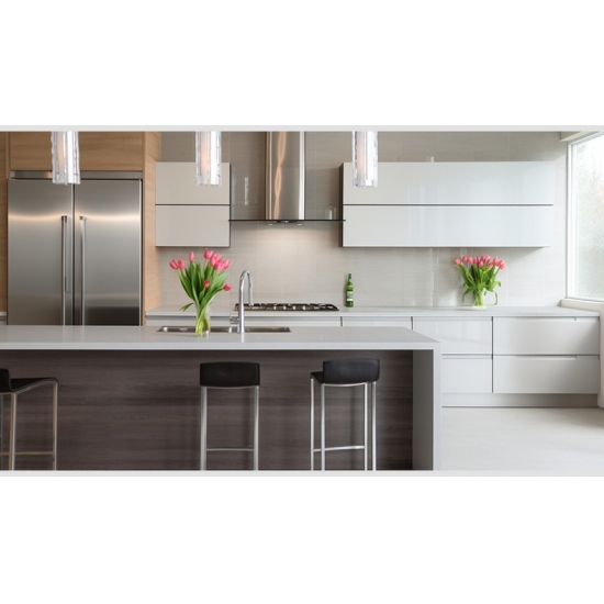 2005 스노우 화이트 스파클 쿼츠는 눈부신 화이트 컬러와 얼음처럼 차가운 스파클이 어우러져 공간에 매력과 아름다움을 더합니다. 주방, 욕실 등 은은한 우아함을 원하는 모든 공간에 이 프리미엄 쿼츠는 완벽한 선택입니다. 내구성이 뛰어나고 관리가 간편하며 얼룩에도 강한 이 쿼츠는 가정 및 상업 공간의 바닥재, 주방 벽면, 포인트 벽면으로 사용하기에 적합합니다.