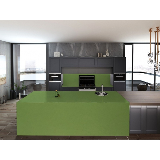 그린 애플 오라 쿼츠 상판은 보는 사람에게 행복감을 주는 녹색을 띠는 슬래브로, 주방 조리대, 욕실 벽 등에 사용하기에 매우 적합하며, 분명 마음에 드실 겁니다.