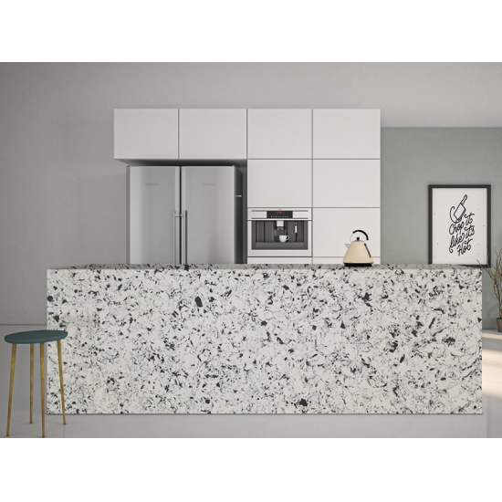 잉크 플랜트 스파클 쿼츠는 특수 처리된 인조 쿼츠 스톤으로, 다른 시리즈와 달리 더욱 반짝이는 외관을 자랑합니다. 벽, 바닥, 조리대 등에 시공하면 깊이감과 질감을 더해줍니다. 욕실이나 주방의 벽면 장식이나 세면대 뒷벽을 꾸미는 데에도 활용할 수 있습니다. 또한 항균 및 방습성이 뛰어나 습기에 강한 특성 덕분에 습기가 많은 환경에서도 탁월한 성능을 발휘합니다.
