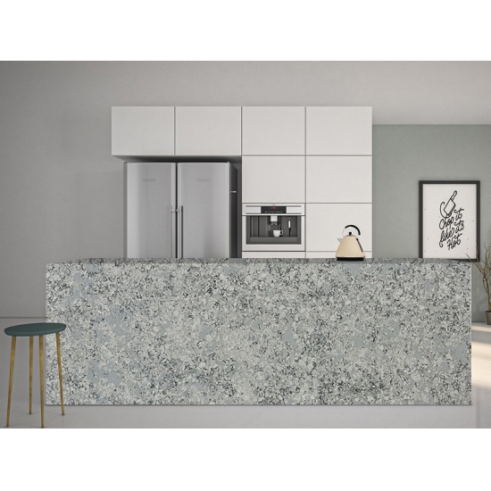 윙키 스파클 쿼츠 화이트는 특수 처리된 인조 쿼츠 스톤으로, 다른 시리즈와 달리 더욱 반짝이는 외관을 자랑합니다. 이 쿼츠는 벽, 바닥, 조리대 등에 시공했을 때 깊이감과 질감을 더해줍니다. 욕실과 주방의 벽면 장식이나 세면대 뒷벽을 꾸미는 데에도 활용할 수 있습니다. 또한 항균 및 방습성이 뛰어나 습기에 강한 특성 덕분에 습기가 많은 환경에서도 탁월한 성능을 발휘합니다.