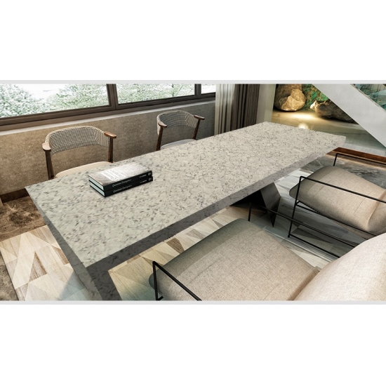 4012 리버 크레마 대리석 석영 슬래브 따뜻하고 우아한 분위기를 자아내는 이 쿼츠 슬래브는 천연 대리석에서 영감을 받은 부드럽고 유려한 결이 돋보이는 크림빛 바탕에 섬세한 움직임과 깊이감을 더합니다. 표면은 세련되고 시대를 초월하는 매력을 발산하며, 과하지 않은 절묘한 결은 전체적인 디자인을 해치지 않습니다. 공간에 따뜻함과 세련미를 불어넣도록 디자인된 이 쿼츠 슬래브는 균형 잡힌 고급스러운 미학을 추구하는 주거 및 상업 공간 인테리어에 이상적인 선택입니다.