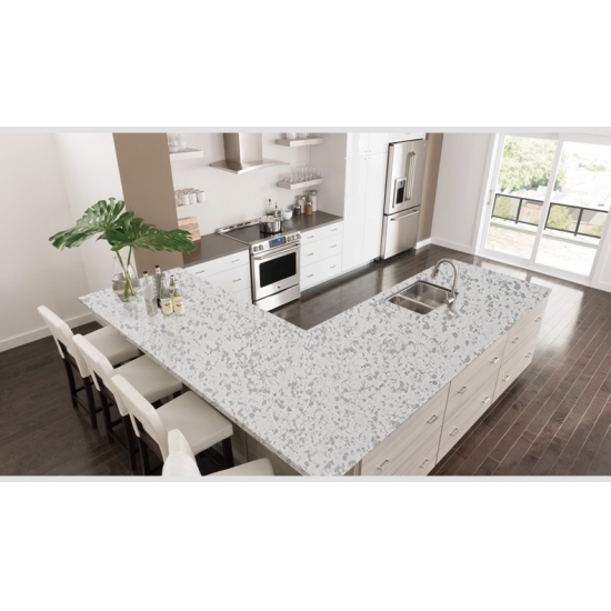4021 이노센스 마블 쿼츠 은은한 회색 무늬가 섬세하게 수놓아진 부드러운 흰색 바탕은 차분하고 우아한 분위기를 자아냅니다. 표면 전체에 걸쳐 빛과 그림자가 미묘하게 어우러져 고요하면서도 세련된 느낌을 연출하며, 대리석에서 영감을 받은 디자인의 자연스러운 아름다움을 더욱 돋보이게 합니다. 이 쿼츠 슬래브는 어떤 공간에도 시대를 초월하는 우아함을 더해주어, 세련되고 고품격 분위기를 연출하고자 하는 주방, 욕실, 포인트 벽면에 완벽하게 어울립니다.