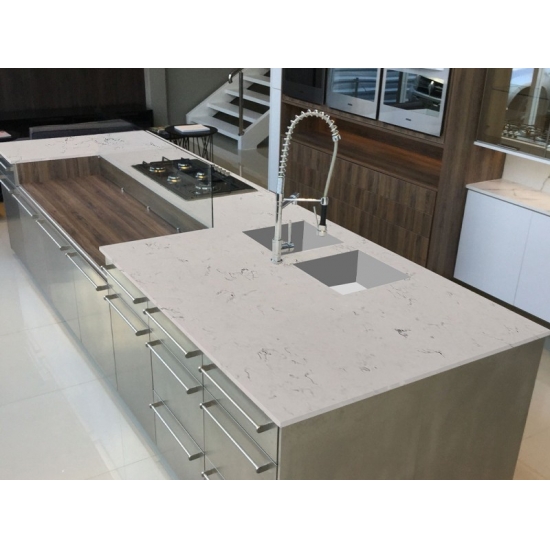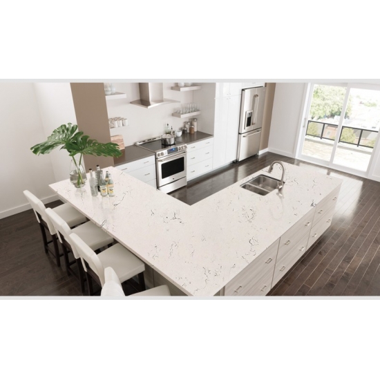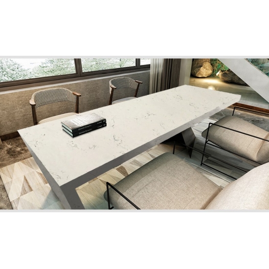 4029 윙키 마블 쿼츠 은은한 회색과 베이지색 줄무늬가 섬세하게 어우러진 부드러운 흰색 바탕에 우아하고 세련된 디자인이 돋보입니다. 표면은 자연스럽고 변치 않는 아름다움을 발산하며, 부드러운 줄무늬는 유려한 흐름과 고급스러움을 자아냅니다. 이 석영 슬래브는 절제된 고급스러움으로 어떤 공간에도 품격을 더하며, 조리대, 벽면 또는 장식물에 차분하고 우아한 분위기를 연출합니다.