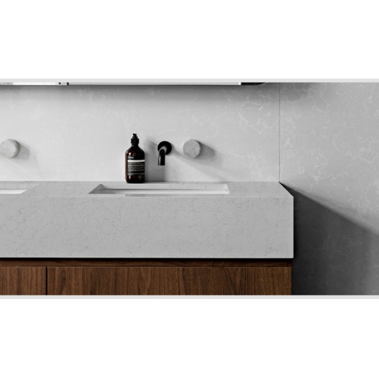 4032 거친 카라라 대리석 석영 이 제품은 천연 카라라 대리석에서 영감을 받은 대담하고 거친 회색 줄무늬가 돋보이는 부드러운 흰색 배경으로 시대를 초월하는 우아함을 선사합니다. 표면은 뚜렷한 줄무늬가 슬래브 전체에 유기적으로 흐르며 깊이감과 자연스러운 움직임을 더해 세련되면서도 역동적인 분위기를 자아냅니다. 이 쿼츠는 클래식한 대리석의 아름다움을 향상된 내구성과 함께 제공하도록 설계되어 현대적인 공간과 전통적인 공간 모두에 탁월한 선택이며, 전체적인 세련미를 한층 높여줍니다.