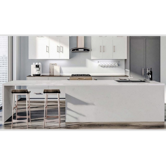 4037 카라라 지르지오 쿼츠는 카라라 대리석의 고전적인 아름다움을 세련되고 현대적인 형태로 재해석했습니다. 은은한 흰색 표면 위로 우아하게 흐르는 밝은 회색 줄무늬는 시대를 초월하는 고품격 분위기를 자아냅니다. 자연스러운 줄무늬의 움직임은 깊이감과 세련미를 더해 전통적인 공간과 현대적인 공간 모두에 이상적인 선택이 됩니다. 카라라 지르지오는 고급스럽고 오래도록 변치 않는 매력을 원하는 분들에게 완벽한 선택입니다.