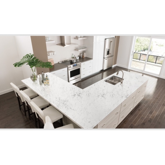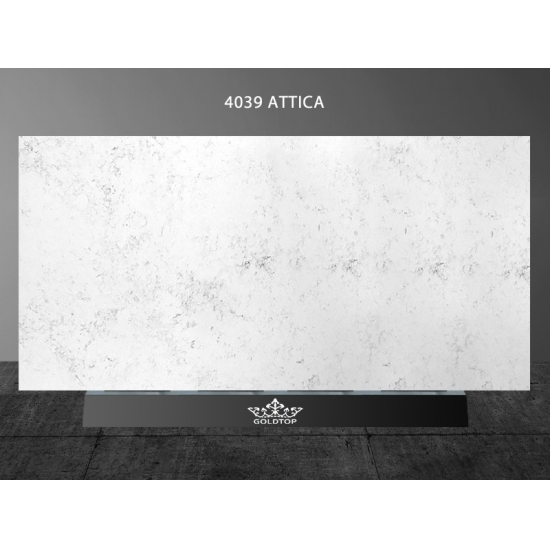 4039 아티카 대리석 석영 슬래브 섬세한 회색 줄무늬가 돋보이는 부드러운 흰색 바탕이 세련되고 우아한 분위기를 자아냅니다. 표면은 깔끔하고 시대를 초월하는 아름다움을 선사하며, 은은한 대리석 무늬가 슬래브 전체에 자연스럽게 흐르듯 펼쳐져 균형과 조화를 이룹니다. 절제된 고급스러움을 담은 이 쿼츠는 현대적인 공간과 클래식한 공간 모두에 잘 어울리며, 어떤 인테리어에도 밝고 세련된 감각을 더해줍니다.