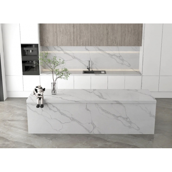칼라카타 시리즈 쿼츠는 현재 가장 인기 있는 쿼츠 스톤 제품입니다. 정교하고 독특한 칼라카타 쿼츠는 깨끗한 흰색과 대리석 무늬가 돋보이는 아름다운 패턴으로 감각을 사로잡습니다. 고급스러운 질감과 눈길을 사로잡는 넓은 무늬를 자랑하는 이 쿼츠는 칼라카타 대리석의 자연스러운 외관을 그대로 재현하면서도 대리석 상판의 단점을 모두 해결했습니다. 칼라카타 쿼츠는 내구성이 매우 뛰어나 얼룩과 긁힘에 강하기 때문에 주방 및 욕실 조리대, 계단, 창틀, 맞춤 가구, 실내외 벽면 및 바닥재, 워터젯 패턴 등 다양한 디자인 프로젝트에 실용적인 선택입니다.