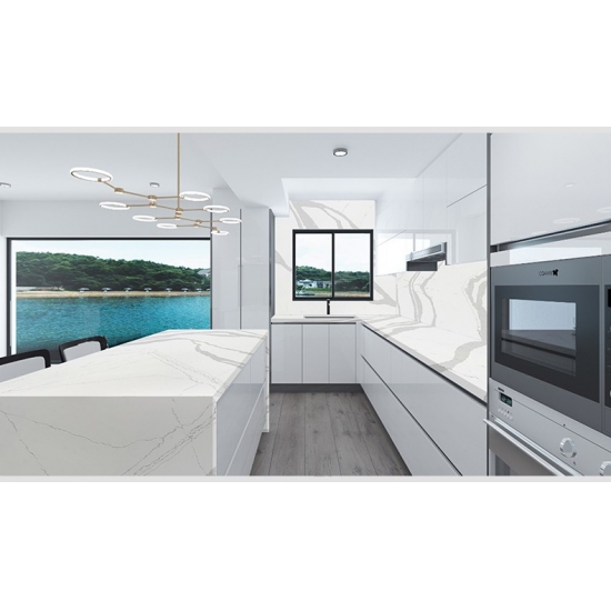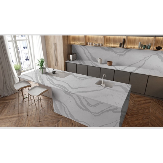5014 밸리 쿼츠 슬랩은 부드럽고 크리미한 흰색 바탕에 섬세하고 유려한 회색 줄무늬가 우아하게 어우러져 있습니다. 이러한 은은한 대비는 부드럽고 자연스러운 우아함과 고요한 움직임을 선사합니다. 시대를 초월하는 아름다움을 지닌 이 슬랩은 어떤 인테리어 공간에도 차분하면서도 세련된 분위기를 연출하기에 이상적입니다.