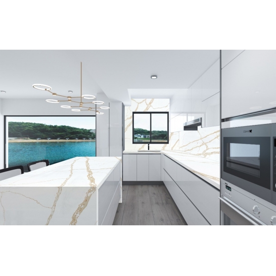 칼라카타 쿼츠 브리타니카 골드는 현재 가장 인기 있는 쿼츠 스톤 제품입니다. 정교하고 독특한 칼라카타 쿼츠는 깨끗한 흰색과 눈길을 사로잡는 대리석 무늬의 줄무늬로 감각을 매료시킵니다.