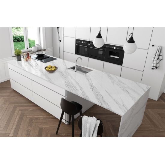 정교하고 독특한 칼라카타 쿼츠는 깨끗한 흰색과 눈길을 사로잡는 대리석 무늬의 줄무늬로 감각을 매료시킵니다. 아름답고 강렬한 넓은 줄무늬 패턴과 고급스러운 촉감을 자랑하는 이 쿼츠는 칼라카타 대리석의 자연스러운 외관을 그대로 재현하면서도 대리석 상판의 단점을 모두 해결했습니다. 칼라카타 쿼츠는 내구성이 매우 뛰어나 얼룩과 긁힘에 강하기 때문에 주방 및 욕실 조리대, 계단, 창틀, 맞춤 가구, 내외부 벽면 및 바닥재, 워터젯 패턴 등 다양한 디자인 프로젝트에 실용적인 선택입니다.