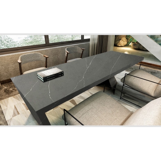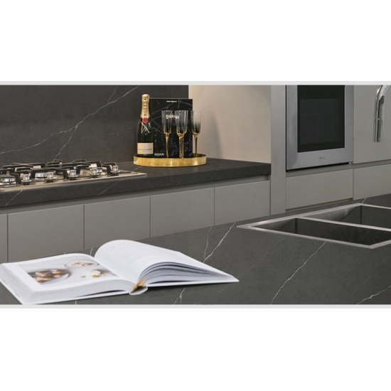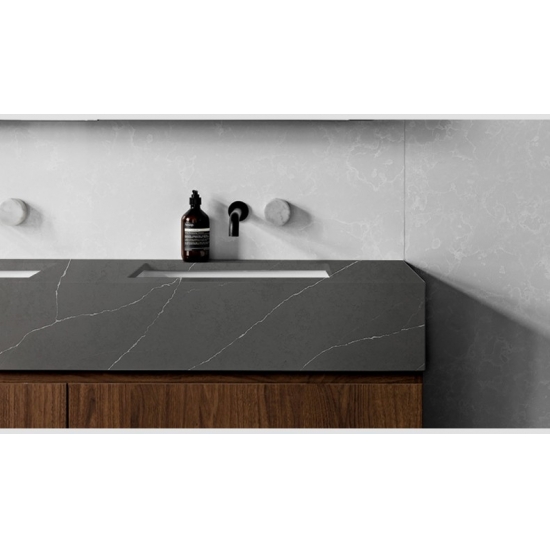5032 템퍼 쿼츠 슬랩은 짙은 숯색 바탕에 강렬한 흰색 줄무늬가 드라마틱하게 어우러져 대담하고 역동적인 매력을 발산합니다. 높은 대비를 이루는 패턴은 강렬한 에너지와 모던한 감각을 선사합니다. 이 슬랩은 시각적으로 뛰어난 효과를 제공하여 현대적이고 개성 넘치는 인테리어에 이상적이며, 어떤 공간에도 드라마틱한 세련미를 더해줍니다.