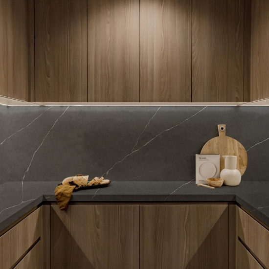 칼라카타 시리즈 쿼츠는 현재 가장 인기 있는 쿼츠 스톤 제품입니다. 정교하고 독특한 칼라카타 쿼츠는 깨끗한 흰색과 대리석 무늬가 돋보이는 아름다운 패턴으로 감각을 사로잡습니다. 고급스러운 질감과 눈길을 사로잡는 넓은 무늬를 자랑하는 이 쿼츠는 칼라카타 대리석의 자연스러운 외관을 그대로 재현하면서도 대리석 상판의 단점을 모두 해결했습니다. 칼라카타 쿼츠는 내구성이 매우 뛰어나 얼룩과 긁힘에 강하기 때문에 주방 및 욕실 조리대, 계단, 창틀, 맞춤 가구, 실내외 벽면 및 바닥재, 워터젯 패턴 등 다양한 디자인 프로젝트에 실용적인 선택입니다.