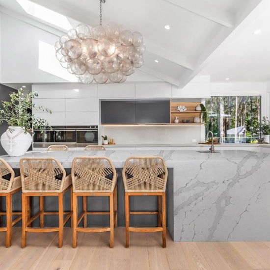 칼라카타 쿼츠는 천연 성분으로 만들어졌지만 강하고 내구성이 뛰어나며 다공성이 낮아 쿼츠 소재의 석재 제품은 마모가 거의 없습니다. 내구성, 편안함, 그리고 균일한 무늬는 쿼츠 석재의 인기가 높아지는 주요 이유입니다. 쿼츠 석재는 90%가 천연석이며, 나머지는 석재의 기술적 특성을 향상시키는 접착제, 염료 및 첨가제입니다. 투수성과 얼룩 방지 기능은 쿼츠 석재의 아름다움을 더욱 돋보이게 합니다.