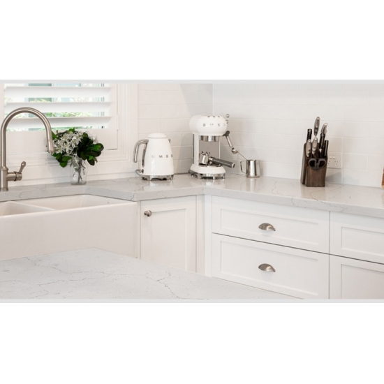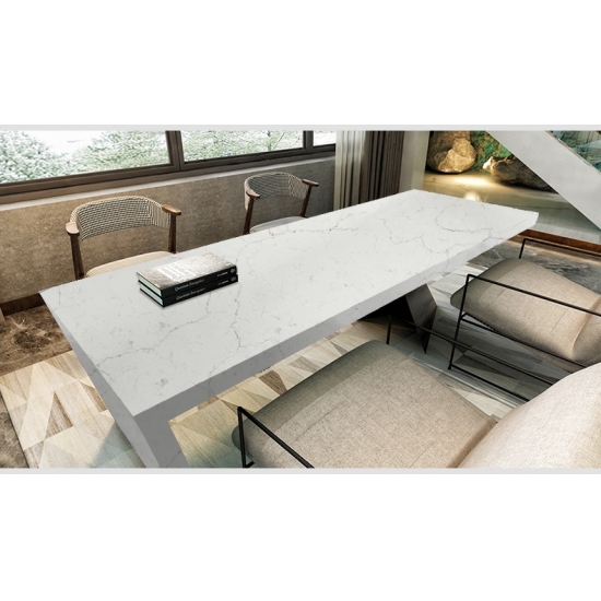 5043 미켈란젤로 쿼츠 슬랩은 강렬한 회색 줄무늬가 돋보이는 새하얀 바탕에 아름다운 색감을 선사합니다. 이러한 강렬한 대비는 시선을 사로잡는 예술적인 분위기를 연출합니다. 웅장함에서 영감을 받은 이 슬랩은 어떤 모던 인테리어에도 시대를 초월하는 고급스러움과 품격을 더합니다.