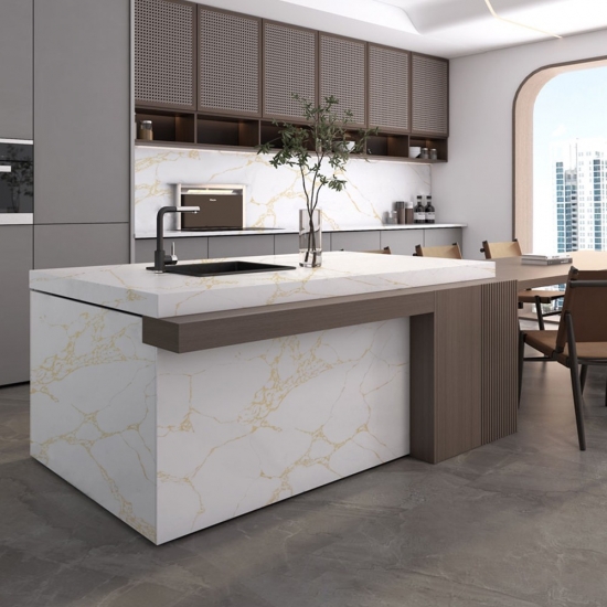 칼라카타 쿼츠 브리타니카 골드는 현재 가장 인기 있는 쿼츠 스톤 제품입니다. 정교하고 독특한 칼라카타 쿼츠는 깨끗한 흰색과 눈길을 사로잡는 대리석 무늬의 줄무늬로 감각을 매료시킵니다.