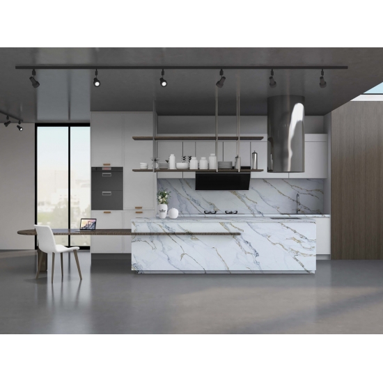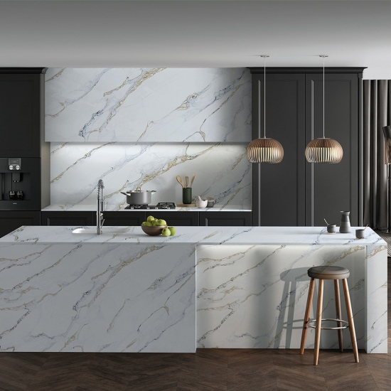 칼라카타 시리즈 쿼츠는 현재 가장 인기 있는 쿼츠 스톤 제품입니다. 정교하고 독특한 칼라카타 쿼츠는 깨끗한 흰색과 대리석 무늬가 돋보이는 아름다운 줄무늬로 감각을 사로잡습니다. 넓고 아름다운 줄무늬 패턴과 고급스러운 질감을 자랑하는 이 쿼츠는 칼라카타 대리석의 자연스러운 외관을 그대로 재현하면서도 대리석 상판의 단점을 모두 해결했습니다. 칼라카타 쿼츠는 내구성이 매우 뛰어나 얼룩과 긁힘에 강하기 때문에 주방 및 욕실 조리대, 계단, 창틀, 맞춤 가구, 실내외 벽면 및 바닥재, 워터젯 패턴 등 다양한 디자인 프로젝트에 실용적인 선택입니다.