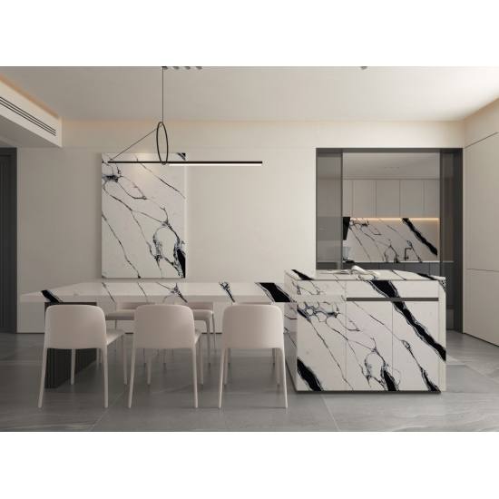 이 쿼츠는 조리대, 주방 아일랜드, 포인트 벽면, 세면대 등 다양한 용도에 적합합니다. 굵은 무늬는 개성과 세련미를 더해 어떤 디자인에서도 시선을 사로잡는 포인트가 됩니다. 매끄러운 금속 소재나 따뜻한 원목 소재와 함께 매치하면 5125 칼라카타 피오리나 쿼츠는 공간의 품격을 한층 높여줍니다.