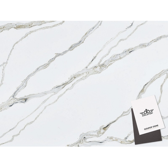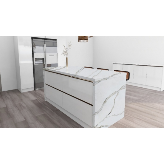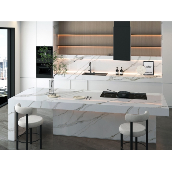 칼라카타 시리즈 쿼츠는 현재 가장 인기 있는 쿼츠 스톤 제품입니다. 정교하고 독특한 칼라카타 쿼츠는 깨끗한 흰색과 대리석 무늬가 돋보이는 아름다운 패턴으로 감각을 사로잡습니다. 고급스러운 질감과 눈길을 사로잡는 넓은 무늬를 자랑하는 이 쿼츠는 칼라카타 대리석의 자연스러운 외관을 그대로 재현하면서도 대리석 상판의 단점을 모두 해결했습니다. 칼라카타 쿼츠는 내구성이 매우 뛰어나 얼룩과 긁힘에 강하기 때문에 주방 및 욕실 조리대, 계단, 창틀, 맞춤 가구, 실내외 벽면 및 바닥재, 워터젯 패턴 등 다양한 디자인 프로젝트에 실용적인 선택입니다.