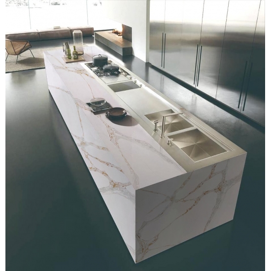 칼라카타 시리즈 쿼츠는 현재 가장 인기 있는 쿼츠 스톤 제품입니다. 정교하고 독특한 칼라카타 쿼츠는 깨끗한 흰색과 대리석 무늬가 돋보이는 아름다운 패턴으로 감각을 사로잡습니다. 고급스러운 질감과 눈길을 사로잡는 넓은 무늬를 자랑하는 이 쿼츠는 칼라카타 대리석의 자연스러운 외관을 그대로 재현하면서도 대리석 상판의 단점을 모두 해결했습니다. 칼라카타 쿼츠는 내구성이 매우 뛰어나 얼룩과 긁힘에 강하기 때문에 주방 및 욕실 조리대, 계단, 창틀, 맞춤 가구, 실내외 벽면 및 바닥재, 워터젯 패턴 등 다양한 디자인 프로젝트에 실용적인 선택입니다.