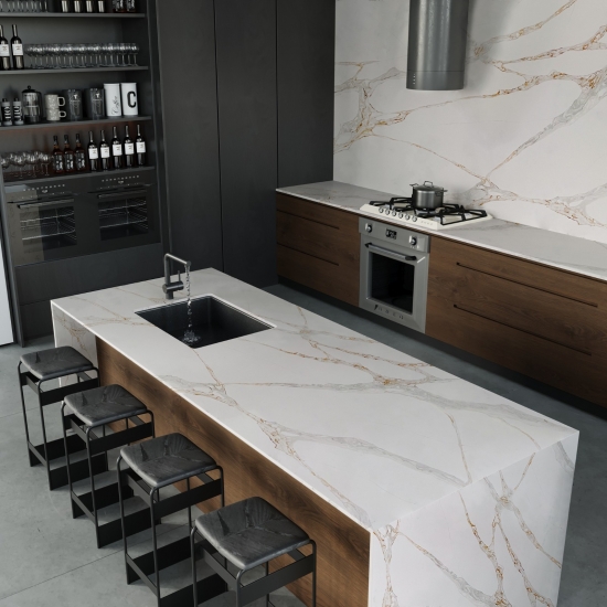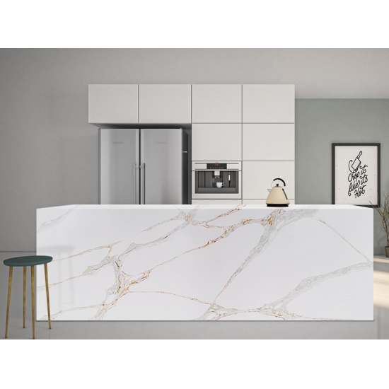 칼라카타 쿼츠 브리타니카 골드는 현재 가장 인기 있는 쿼츠 스톤 제품입니다. 정교하고 독특한 칼라카타 쿼츠는 깨끗한 흰색과 눈길을 사로잡는 대리석 무늬의 줄무늬로 감각을 매료시킵니다.