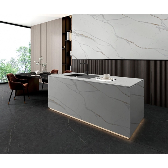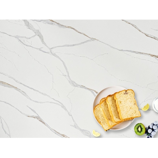 비교할 수 없는 아름다움을 자랑하는 셀리니 쿼츠 상판, 화이트 골드 텍스처를 소개합니다! 이 정교한 상판은 우아한 화이트 바탕에 섬세한 골드 텍스처가 조화롭게 어우러져 집안 인테리어에 고급스러움과 세련미를 더합니다. 고품질 소재와 혁신적인 기술로 제작된 이 다용도 상판은 주방이나 욕실을 스타일과 편안함이 가득한 빛나는 공간으로 탈바꿈시키는 데 완벽합니다.