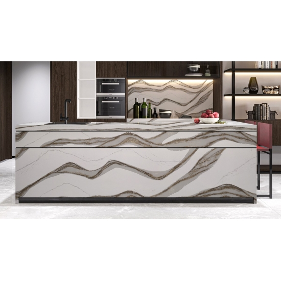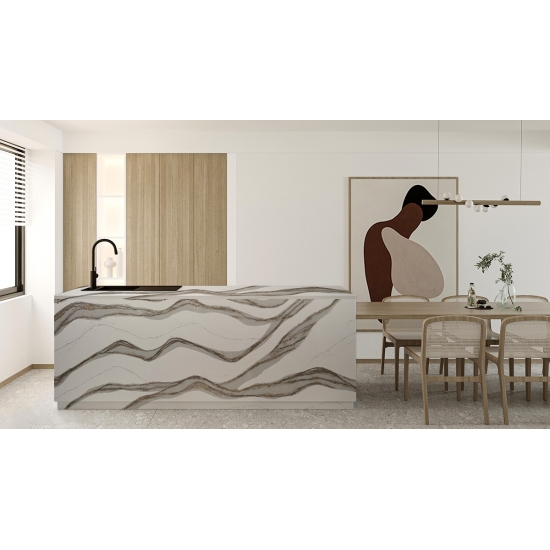 5081 스카라 델리카토 쿼츠는 은은한 회색 줄무늬가 부드러운 흰색 바탕에 우아함을 더하는 세련된 석재입니다. 천연 대리석의 변치 않는 아름다움에서 영감을 받은 이 디자인은 쿼츠의 향상된 내구성과 손쉬운 관리를 제공합니다. 섬세한 줄무늬가 표면을 따라 자연스럽게 흐르며 어떤 공간에도 세련된 분위기를 선사합니다.