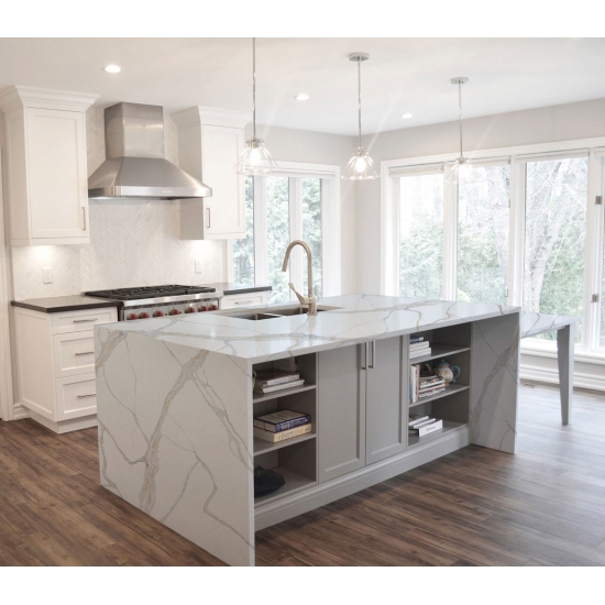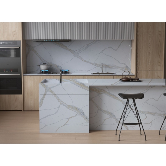칼라카타 시리즈 쿼츠는 현재 가장 인기 있는 쿼츠 스톤 제품입니다. 정교하고 독특한 칼라카타 쿼츠는 깨끗한 흰색과 대리석 무늬가 돋보이는 아름다운 줄무늬로 감각을 사로잡습니다. 넓고 아름다운 줄무늬 패턴과 고급스러운 질감을 자랑하는 이 쿼츠는 칼라카타 대리석의 자연스러운 외관을 그대로 재현하면서도 대리석 상판의 단점을 모두 해결했습니다. 칼라카타 쿼츠는 내구성이 매우 뛰어나 얼룩과 긁힘에 강하기 때문에 주방 및 욕실 조리대, 계단, 창틀, 맞춤 가구, 실내외 벽면 및 바닥재, 워터젯 패턴 등 다양한 디자인 프로젝트에 실용적인 선택입니다.