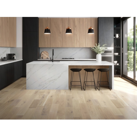 정교하고 독특한 칼라카타 쿼츠는 깨끗한 흰색과 눈길을 사로잡는 대리석 무늬의 줄무늬로 감각을 매료시킵니다. 아름답고 강렬한 넓은 줄무늬 패턴과 고급스러운 촉감을 자랑하는 이 쿼츠는 칼라카타 대리석의 자연스러운 외관을 그대로 재현하면서도 대리석 상판의 단점을 모두 해결했습니다. 칼라카타 쿼츠는 내구성이 매우 뛰어나 얼룩과 긁힘에 강하기 때문에 주방 및 욕실 조리대, 계단, 창틀, 맞춤 가구, 내외부 벽면 및 바닥재, 워터젯 패턴 등 다양한 디자인 프로젝트에 실용적인 선택입니다.