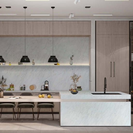 칼라카타 시리즈 쿼츠는 현재 가장 인기 있는 쿼츠 스톤 제품입니다. 정교하고 독특한 칼라카타 쿼츠는 깨끗한 흰색과 대리석 무늬가 돋보이는 아름다운 줄무늬로 감각을 사로잡습니다. 넓고 아름다운 줄무늬 패턴과 고급스러운 질감을 자랑하는 이 쿼츠는 칼라카타 대리석의 자연스러운 외관을 그대로 재현하면서도 대리석 상판의 단점을 모두 해결했습니다. 칼라카타 쿼츠는 내구성이 매우 뛰어나 얼룩과 긁힘에 강하기 때문에 주방 및 욕실 조리대, 계단, 창틀, 맞춤 가구, 실내외 벽면 및 바닥재, 워터젯 패턴 등 다양한 디자인 프로젝트에 실용적인 선택입니다.