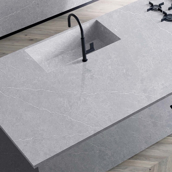 6005 콘크리트 블룸 콘크리트 석영 콘크리트 쿼츠는 특수 처리된 인조 석재 쿼츠 소재입니다. 무광 마감과 유사하지만, 콘크리트 마감은 일반적인 광택 마감과 비교했을 때 쿼츠의 색상을 미묘하게 변화시킵니다. 화강암의 경우 이러한 마감을 "브러시드"라고도 합니다.