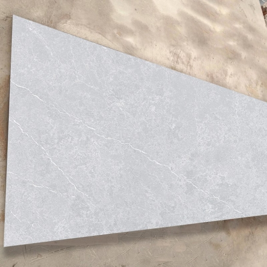 시멘트 화이트 쿼츠 스노우플레이크 텍스처 쿼츠는 특수 처리된 인조석 소재입니다. 무광 마감과 유사하며, 콘크리트 마감 처리는 일반적인 광택 마감과 비교하여 쿼츠의 색상을 약간 변화시킵니다. 이러한 마감은 화강암의 경우 "브러시드" 마감이라고도 합니다.