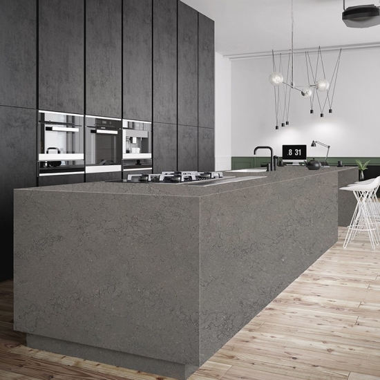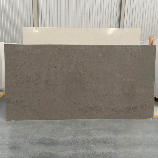 콘크리트 쿼츠는 특수 처리된 인조 석재 쿼츠 소재입니다. 무광 마감과 유사하지만, 콘크리트 마감은 일반적인 광택 마감과 비교했을 때 쿼츠의 색상을 미묘하게 변화시킵니다. 화강암의 경우 이러한 마감을 "브러시드"라고도 합니다.