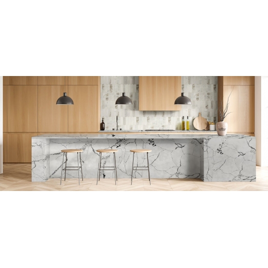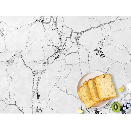 시멘트 화이트 쿼츠 스노우플레이크 텍스처 쿼츠는 특수 처리된 인조석 소재입니다. 무광 마감과 유사하며, 콘크리트 마감 처리는 일반적인 광택 마감과 비교하여 쿼츠의 색상을 약간 변화시킵니다. 이러한 마감은 화강암의 경우 "브러시드" 마감이라고도 합니다.