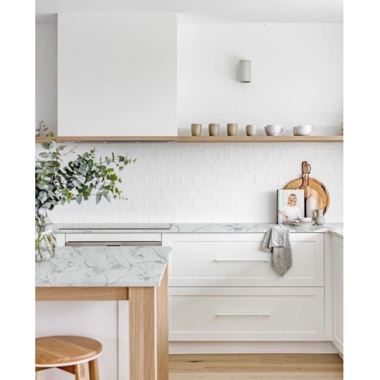시멘트 화이트 쿼츠 스노우플레이크 텍스처 쿼츠는 특수 처리된 인조석 소재입니다. 무광 마감과 유사하며, 콘크리트 마감 처리는 일반적인 광택 마감과 비교하여 쿼츠의 색상을 약간 변화시킵니다. 이러한 마감은 화강암의 경우 "브러시드" 마감이라고도 합니다.
