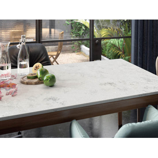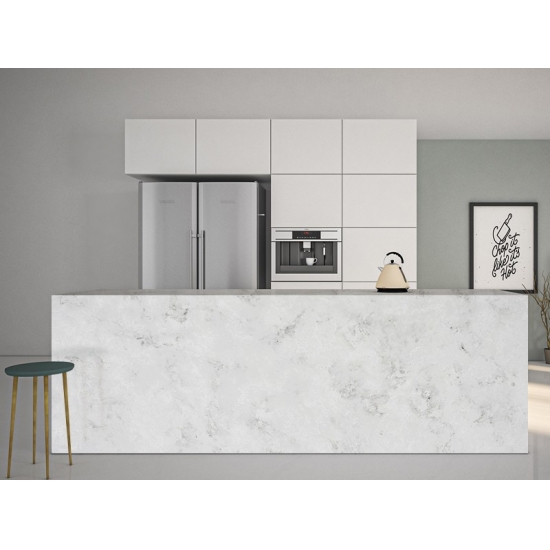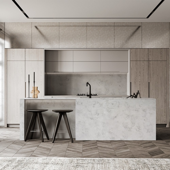 6022 콘크리트 오닉스는 세련되고 모던한 외관으로 유명한 현대적이고 스타일리시한 인조석입니다. 밝은 회색 바탕에 은은하고 정교한 어두운 색조의 줄무늬가 어우러져 세련되고 산업적인 분위기를 연출합니다. 특히 콘크리트의 질감을 닮은 줄무늬는 도시적이고 시크한 감성을 더해줍니다.