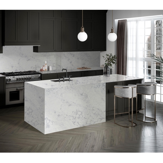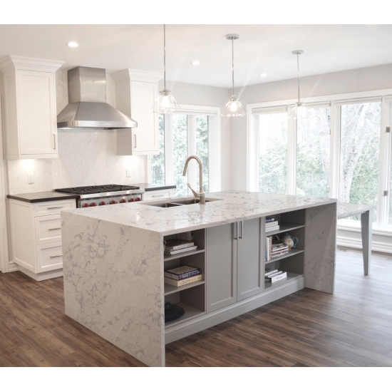 콘크리트 쿼츠는 특수 처리된 인조 석재 쿼츠 소재입니다. 무광 마감과 유사하지만, 콘크리트 마감은 일반적인 광택 마감과 비교했을 때 쿼츠의 색상을 미묘하게 변화시킵니다. 화강암의 경우 이러한 마감을 "브러시드"라고도 합니다.