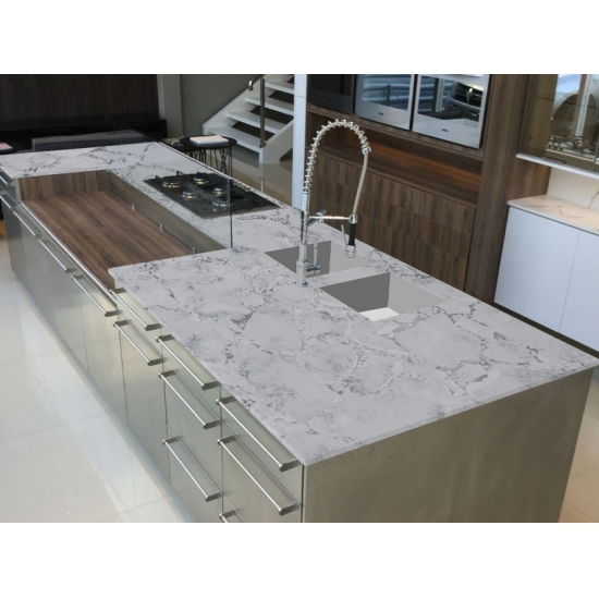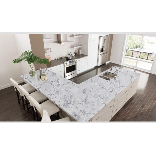 콘크리트 쿼츠는 특수 처리된 인조 석재 쿼츠 소재입니다. 무광 마감과 유사하지만, 콘크리트 마감은 일반적인 광택 마감과 비교했을 때 쿼츠의 색상을 미묘하게 변화시킵니다. 화강암의 경우 이러한 마감을 "브러시드"라고도 합니다.