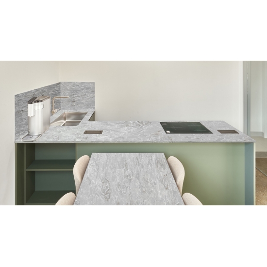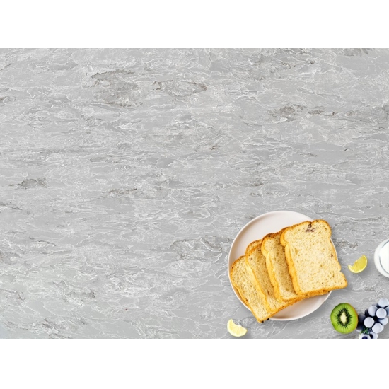 6004 호라이즌 그레이 콘크리트 쿼츠 콘크리트 쿼츠는 특수 처리된 인조 석재 쿼츠 소재입니다. 무광 마감과 유사하지만, 콘크리트 마감은 일반적인 광택 마감과 비교했을 때 쿼츠의 색상을 미묘하게 변화시킵니다. 화강암의 경우 이러한 마감을 "브러시드"라고도 합니다.