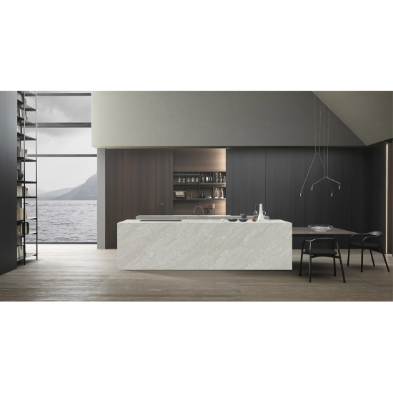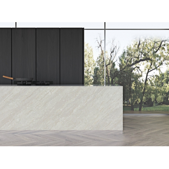 정교하고 독특한 칼라카타 쿼츠는 깨끗한 흰색과 눈길을 사로잡는 대리석 무늬의 줄무늬로 감각을 매료시킵니다. 아름답고 강렬한 넓은 줄무늬 패턴과 고급스러운 촉감을 자랑하는 이 쿼츠는 칼라카타 대리석의 자연스러운 외관을 그대로 재현하면서도 대리석 상판의 단점을 모두 해결했습니다. 칼라카타 쿼츠는 내구성이 매우 뛰어나 얼룩과 긁힘에 강하기 때문에 주방 및 욕실 조리대, 계단, 창틀, 맞춤 가구, 내외부 벽면 및 바닥재, 워터젯 패턴 등 다양한 디자인 프로젝트에 실용적인 선택입니다.