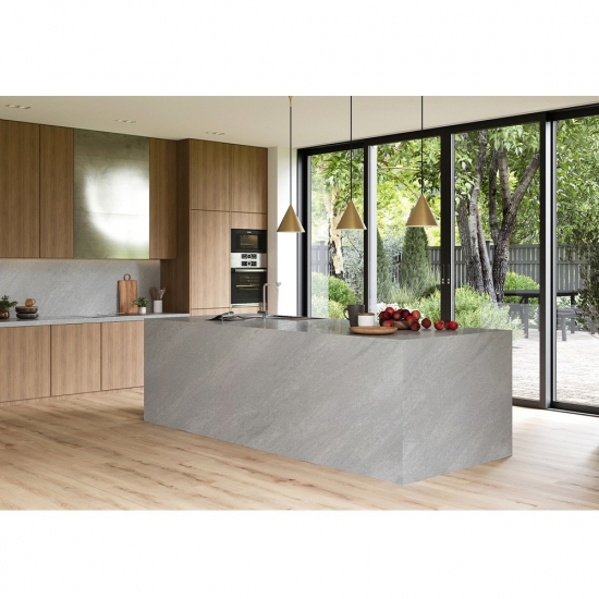 6004 호라이즌 그레이 콘크리트 쿼츠 콘크리트 쿼츠는 특수 처리된 인조 석재 쿼츠 소재입니다. 무광 마감과 유사하지만, 콘크리트 마감은 일반적인 광택 마감과 비교했을 때 쿼츠의 색상을 미묘하게 변화시킵니다. 화강암의 경우 이러한 마감을 "브러시드"라고도 합니다.