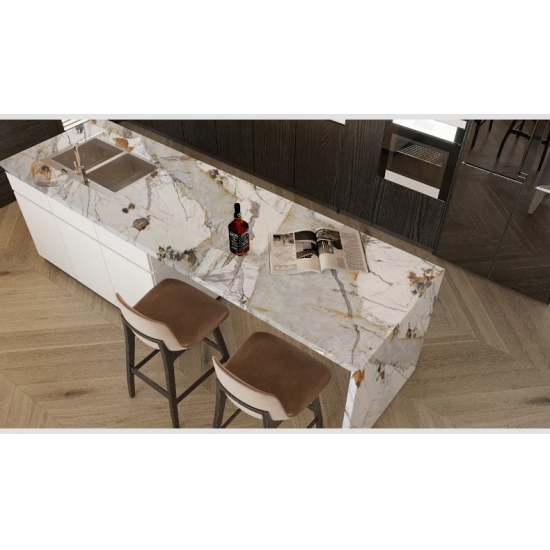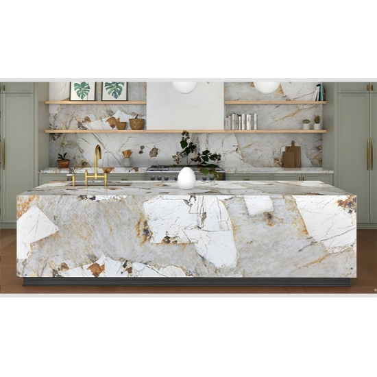 판도라 프린팅 쿼츠 슬래브로 디자인의 자유를 경험해 보세요. 3D 프린팅 기술을 통해 깊고 균일한 무늬를 구현하여 절단면이나 모서리 부분의 시각적 단절을 없앴습니다. 이를 통해 천연 대리석의 아름다움이 표면 전체에 끊김 없이 이어지도록 하여 주거 및 상업 프로젝트 모두에서 더욱 창의적이고 상업적으로 활용 가능한 디자인을 가능하게 합니다.