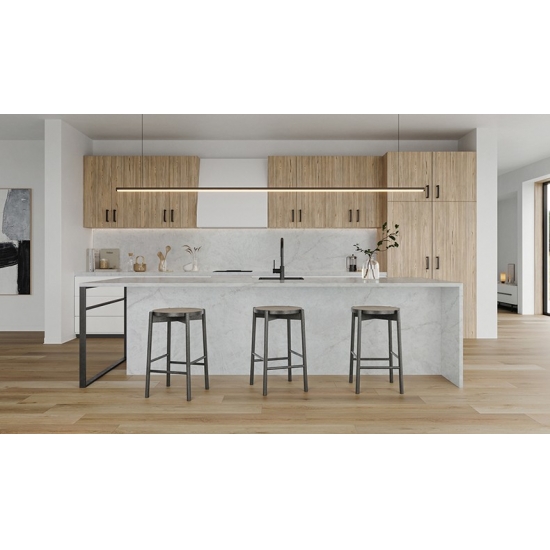 크리스탈로 프린트 쿼츠는 희귀한 천연 규암에서 영감을 받아 제작된 인조석으로, 크리스탈로 규암 특유의 아름다움을 세심하게 재현했습니다. 은은한 회색 줄무늬와 생생한 오렌지색 결정 조각이 어우러진 빛나는 아이스 화이트 바탕에, 빛 아래에서 부드럽고 반투명한 광택을 발산하여 고급스럽고 신비로운 분위기를 연출합니다.
