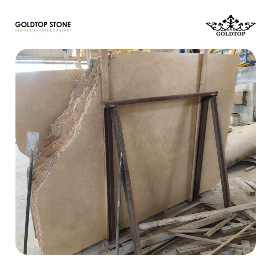 단면으로 자른 베이지색 트래버틴 대리석 슬래브