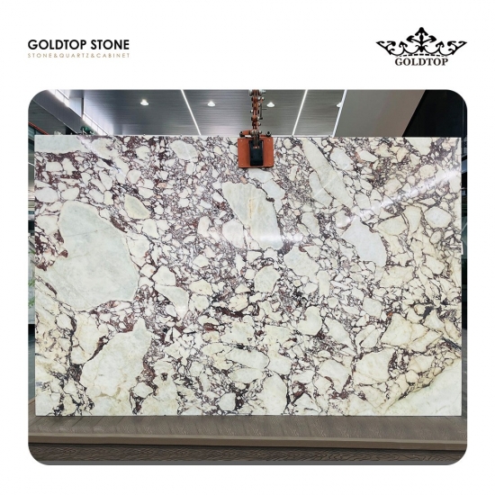 이탈리아 아라베스카토 비올라 대리석: 깨끗한 흰색 바탕에 짙은 붉은색과 갈색의 선명한 줄무늬가 생동감 있게 어우러져 독특하고 드라마틱하며, 본질적으로 세련미가 넘칩니다. 인테리어를 완전히 바꿔줄 디자인입니다.