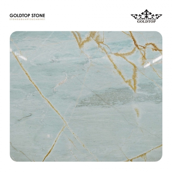 팔리산드로 레알레 대리석 맑고 상쾌한 하늘색 바탕에 흐르는 듯한 금빛 선이 구불구불하게 흐르고, 가장자리에는 따뜻한 갈색 줄무늬가 은은하게 퍼져 나갑니다. 빛과 그림자가 어우러져 밤하늘의 별빛처럼 반짝이는 금빛 반점은 세련되고 고급스러운 스타일을 선사합니다.